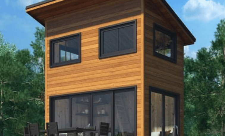 Cabanamood Haven model with premium dark wood facade and panoramic glass